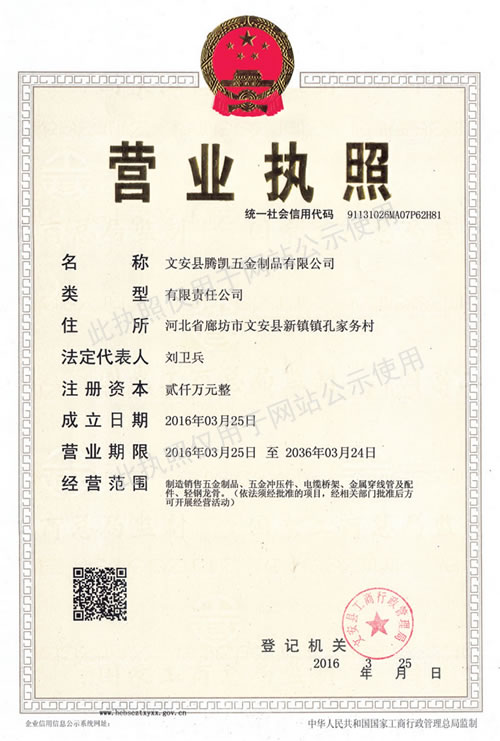 文安縣騰凱五金制品有限公司創(chuàng)建于2006年,是電纜橋架制造廠商,位于河北省文安縣新鎮(zhèn)工業(yè)區(qū),東連京開線106國道,北接津保高速公路,背靠京九大動脈,地處北京、天津、保定三角地帶,交通便捷,通訊發(fā)達(dá)。